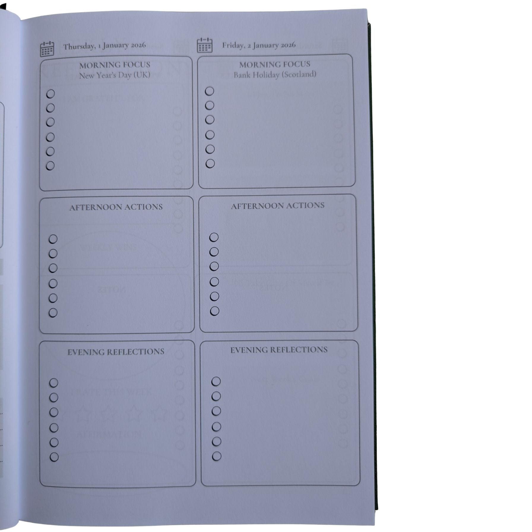 Purple awakens your creative spirit and connects you to your deepest insights, making it perfect for imaginative entries and spiritual reflection. This mystical colour encourages you to explore your dreams, daily experiences, and creative potential while adding an element of elegance to your personal record-keeping. Purple supports both artistic expression and profound self-discovery through your daily writing.