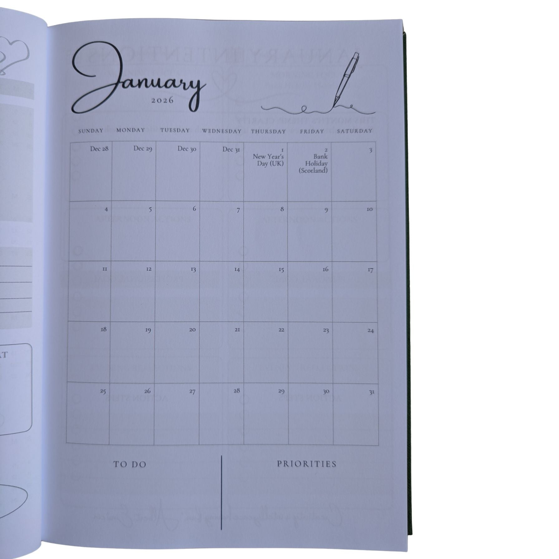 Take some quiet time to set your intentions for each month and reflect on each week and month as you move through the year.